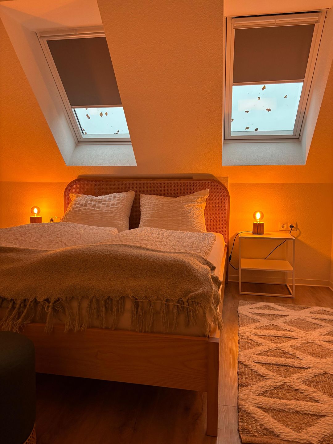 Die Ferienwohnung bietet Platz für bis zu 4 Personen. Am besten eignet sich die Wohnung für 3 Erwachsene, oder 2 Erwachsene und 2 Kinder. Das große Schlafzimmer hat ein Doppelbett (1,60m). Im kleinen Schlafzimmer/Arbeitszimmer steht ein Sofa, welches ausziehbar ist und als Schlafsofa genutzt werden könnte (1,40m). Das Zimmer kann flexibel als 2. Schlafzimmer, oder als Arbeitszimmer mit Schreibtisch genutzt werden.